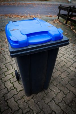 | Papier-Tonne Die Papier-Tonne hat einen blauen Deckel. In die Papier-Tonne kommt altes Papier. In die Papier-Tonne kommen zum Beispiel auch: