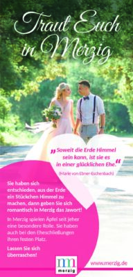 Klicken Sie HIER, um unseren aktuellen Flyer „Traut euch in Merzig“, in dem wir die wichtigsten Informationen aller Trauungsorte zusammengefasst haben, zu öffnen.