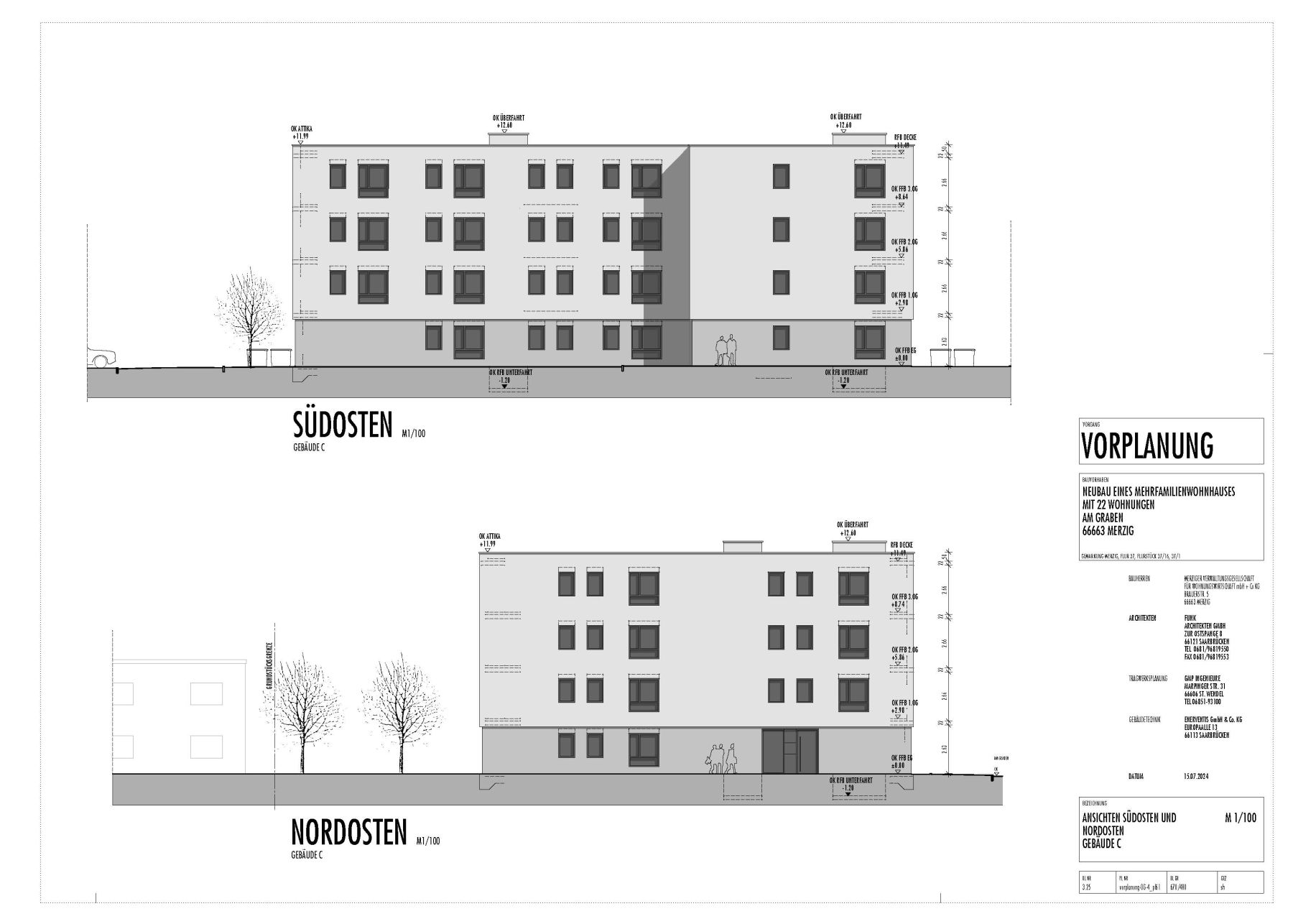Für insgesamt rund 7,9 Millionen Euro sollen in den Straßen „Am Graben“ und „Zum Wiesenhof“ im Bereich der Merziger Schalthaussiedlung zwei identische, jeweils viergeschossige Neubauten entstehen, die dem stetig wachsenden Bedarf an sozialem Wohnraum entgegenwirken sollen. „Die beiden Mehrfamilienwohnhäuser mit jeweils 22 Wohnungen werden dabei gänzlich barrierefrei gestaltet, in jedem Gebäude werden darüber hinaus vier Wohnungen rollstuhlgerecht ausgebaut“, beschreibt Oberbürgermeister Marcus Hoffeld die Vorplanung des Gebäudes. „Dies ist uns besonders wichtig, um auch körperlich eingeschränkten Bürgerinnen und Bürgern ein beschwerdefreies Wohnen in dem Komplex zu ermöglichen.“
